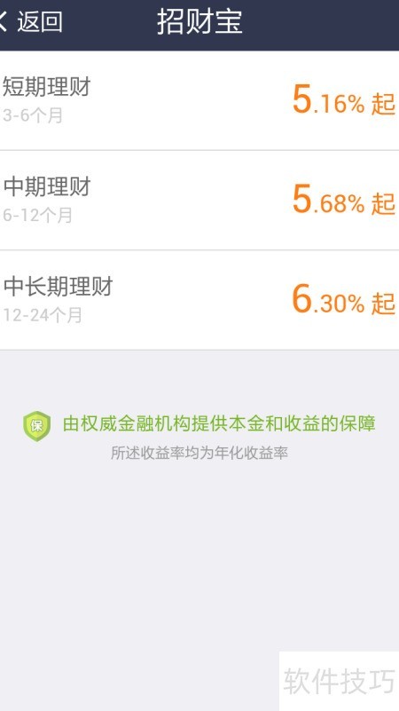 招财宝是一款与余额宝相似的金融信息服务工具,为用户提供便捷、安全的定期理财选择。用户通过参与定期理财产品,可获得稳定回报。相比同期银行存款利率,其收益可达两倍以上,且整体收益率还高于余额宝水平,在保障资金安全的同时,具备较强的增值能力,是一种值得考虑的稳健型投资理财方式。