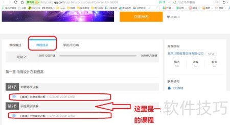 9、 进入课程页面后,可查看详细信息。选择课程目录,会显示以往讲授的内容,若之前未听过,点击播放时可能会遇到无法打开录播的问题。此时无需着急,关键步骤尚未完成——需先完成报名流程,之后即可正常观看所有课程内容。