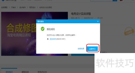 8、 选择一门即将学习的课程,点击打开即可进入学习。我选的是电商设计实战课程,开始系统学习相关内容。