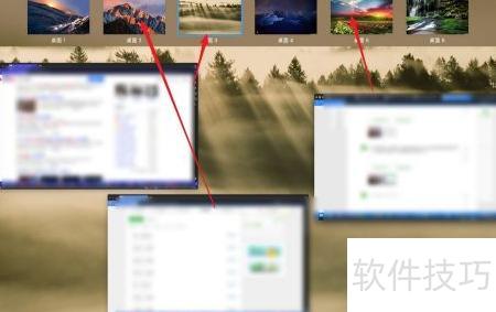 4、 打开多个应用后,用四指上推触控板,将各个应用依次拖拽至桌面1、桌面2、桌面3等不同桌面空间中。