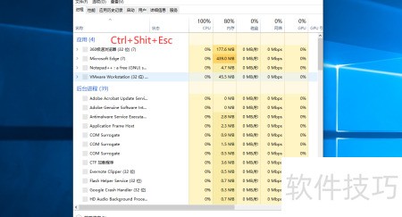 6、 启动系统后,同时按下Ctrl+Shift+Esc键,即可快速启动任务管理器。