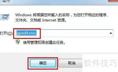 3、 按下Win+R打开运行窗口,输入gpedit.msc后确认即可启动组策略编辑器。