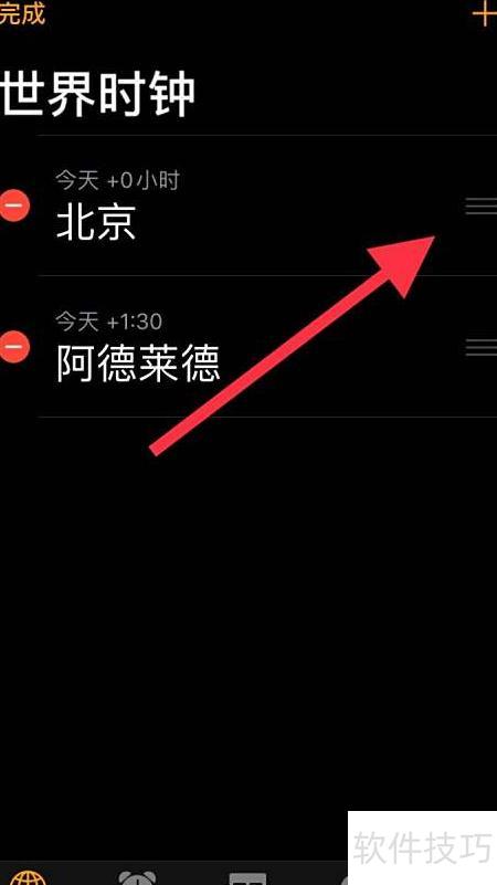 1、 打开手机时钟,点击左下角世界时钟,再点右上角加号添加新城市。