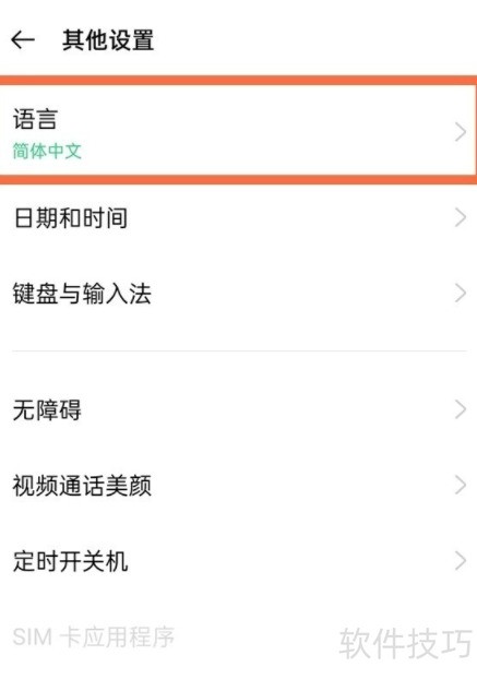 5、 点击语言,选择简体中文并确认。