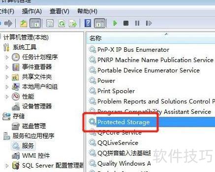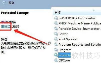 重启Win7系统中的受保护存储服务,可通过服务管理器找到ProtectedStorage并重启该服务。