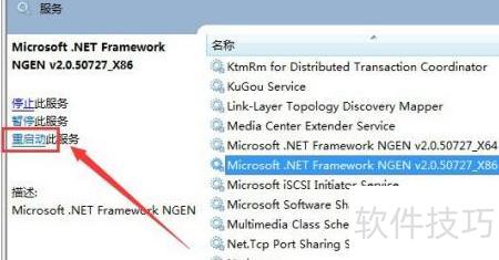在Windows 7系统中,若需重启Microsoft .NET Framework NGEN v2.0.50727_X86(即clr_optimization_v2.0.50727_32),可通过服务管理器找到该服务,右键选择重新启动。若服务异常,可尝试以管理员身份运行命令提示符,输入相应命令手动启动优化进程,确保.NET组件正常运行。