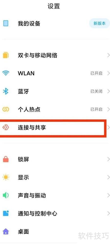 1、 进入手机设置,点击连接与共享功能即可。
