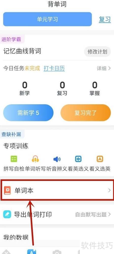 1、 打开英语音标应用,进入单词本功能。