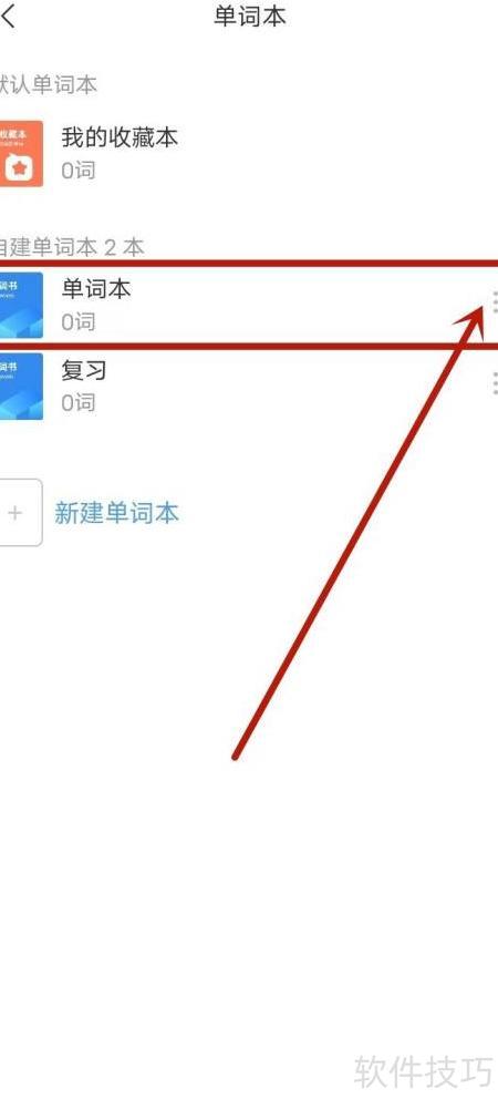 2、 进入单词本列表,选中目标单词本,点击右侧的三个点图标。