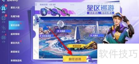 进入游戏活动界面,找到并点击星区巡游即可参与,天启行动中该功能位于相同位置。