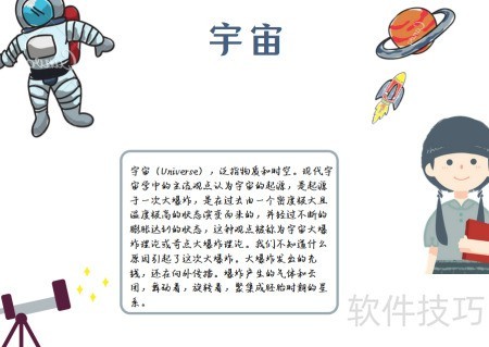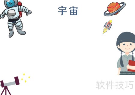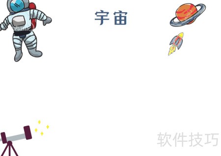 2、 左上角绘宇航员作装饰
