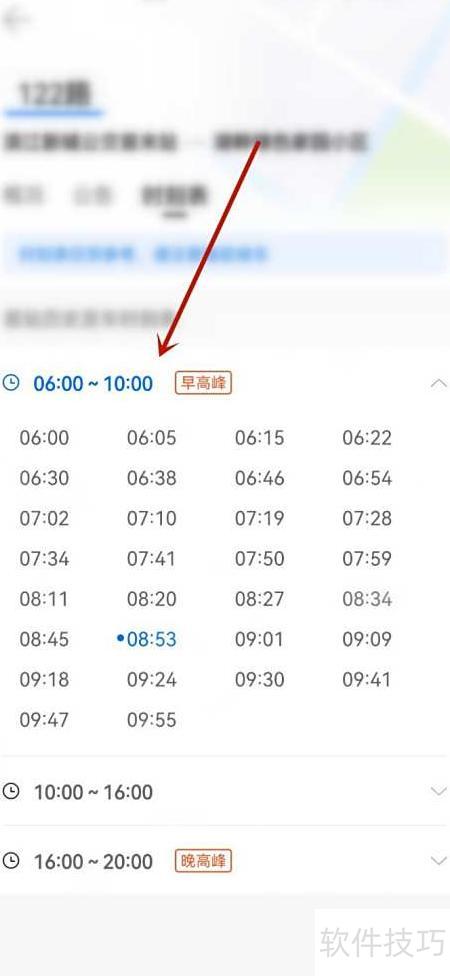 3、 在公交线路信息页面,可查询6:00至20:00各时段的详细发车时刻表,涵盖早间、午间及晚间三个运营时间段的具体班次安排。