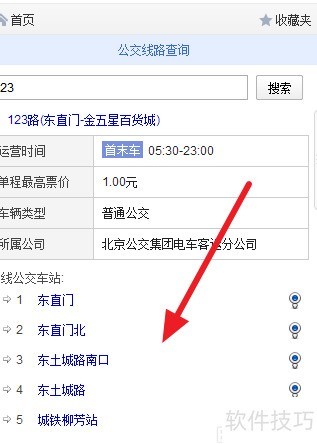 7、 多条线路可供选择,选中合适线路即可查看详细站点信息。