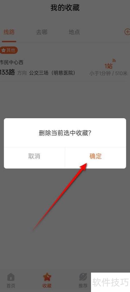 3、 点击确定即可将公交线路从收藏夹中删除。