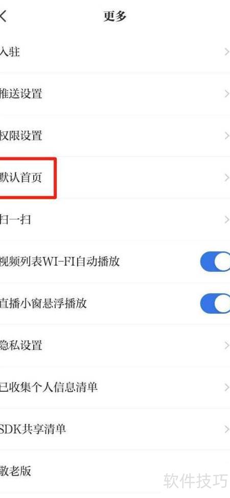 3、 第三步:点击页面上的默认首页选项。