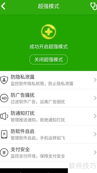 3、 进入设置开启超强模式,状态显示已成功启用。