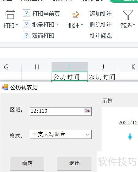 1、 将I列公历日期转换为干支与农历混合格式,操作步骤如下:进入DIY工具箱功能区,选择相应转换功能即可完成。