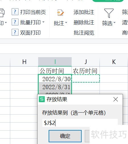 6、 选定转换后农历时间的存储位置。