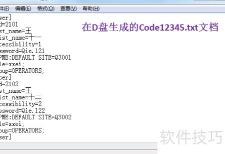 5、 在D盘创建一个名为Code12345.txt的文本文件,使用文件系统对象的创建文本文件方法,指定路径为d:Code12345.txt,并启用覆盖模式以确保文件可被重新生成。