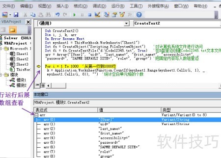 7、 循环执行从第1行至第1000行的操作。