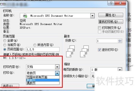 5、 可在此处选择打印奇数页或偶数页,根据需求自行设定。