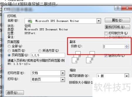 6、 此处设置打印份数。