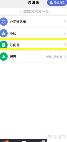 3、 打开通讯录,点击订阅号进入