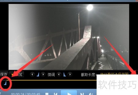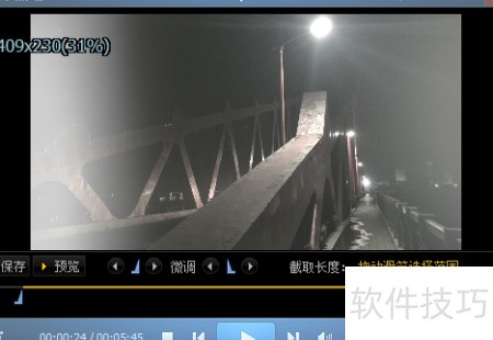 4、 进入截取编辑界面后,拖动进度条两侧滑块选择所需片段,点击预览可查看所选部分的播放效果。