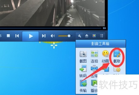 3、 找到右下角的扳手图标影音工具箱,点击后打开菜单,选择其中的截取功能即可。