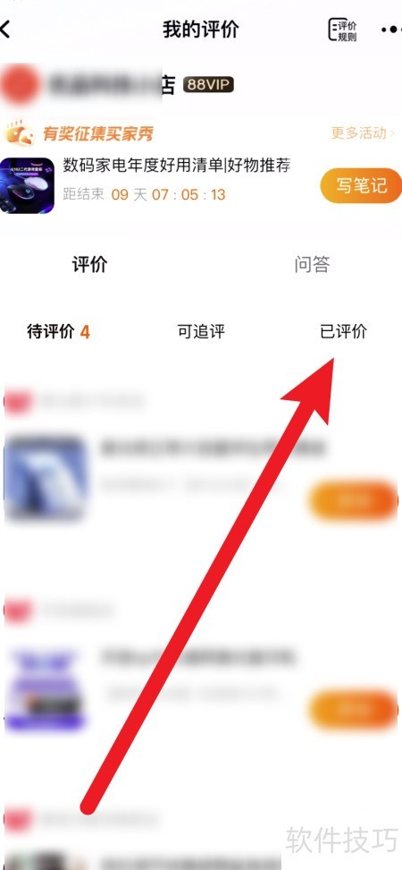 2、 进入待评价页面后,点击已评价按钮。