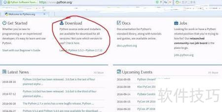 2、 找到Download,点击Python 3.5.2下方链接进入下载页面。