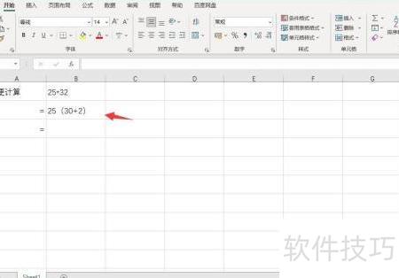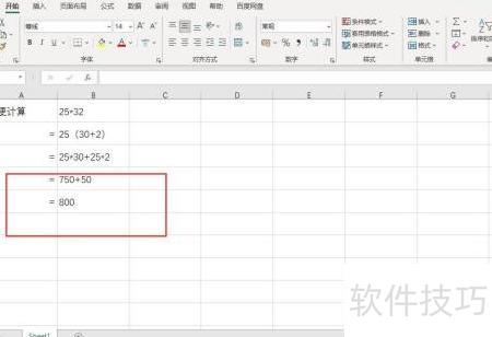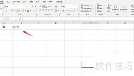2、 打开Excel表格,输入公式=25*32进行计算。