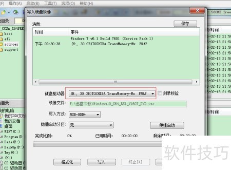 3、 在写入硬盘映像时,从驱动器列表中选择U盘作为目标设备。