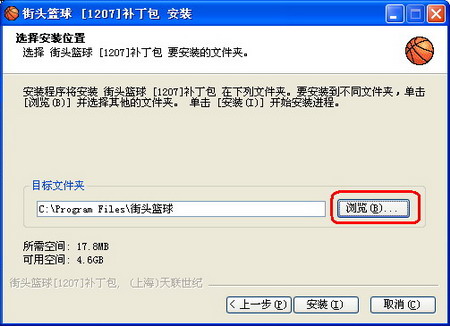 选择此“街头篮球”文件夹,并点击“确定”,出现以下界面,点击“安装”,跳到第6步。