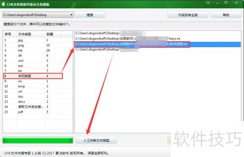 7、 在软件左侧选取未知类型或TXT文件,再从右侧列表中选择一个文件,随后点击按钮。