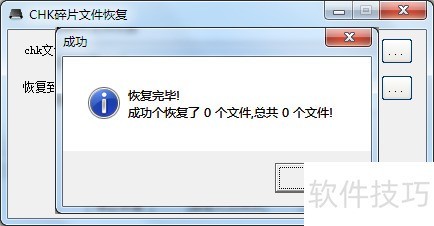 7、 双击CHK碎片文件恢复工具,打开碎片文件夹与保存文件夹,然后开始恢复操作。