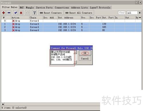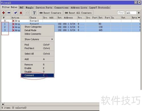 5、 操作:选择策略后,右击并选底部的comment选项。