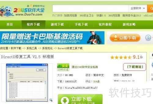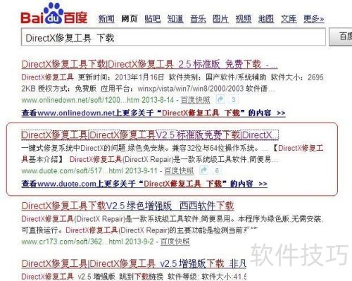 1、 搜索DirectX修复工具关键字,从百度下载相关软件。