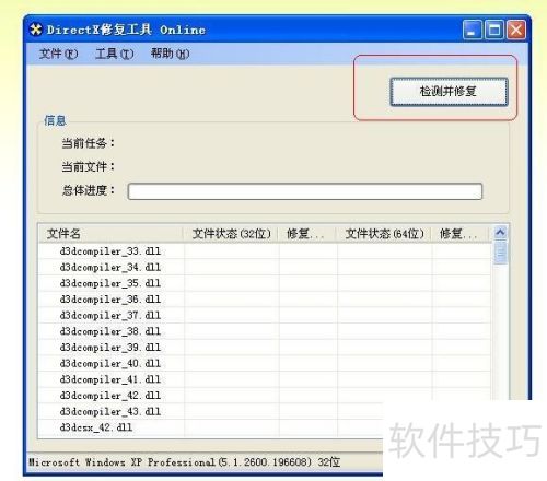 2、 一键修复系统中的DirectX问题,绿色免安装设计。兼容32位与64位操作系统,主要功能是检测当前系统的DirectX运行状态,发现异常后自动进行修复。该程序特别针对常见的0xc000007b错误进行了优化,能够高效、完美地解决这一问题。