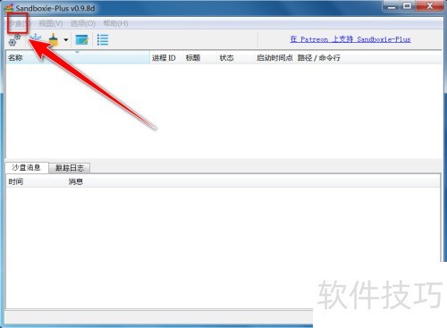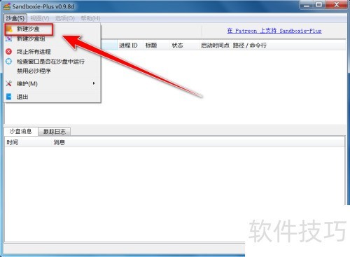 1、 在Sandboxie Plus窗口里,单击菜单栏中的沙盒选项。