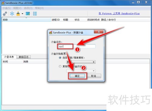 3、 在新建沙盒窗口,输入名称后点击确定。