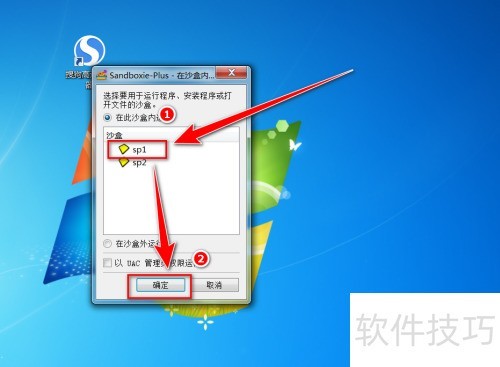7、 在沙盒窗口选择沙盒一,点击确定按钮,就能在沙盒一里运行这个程序了。