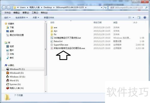 3、 先了解所有文件,以备不时之需。特别需要注意两个文件:其一,当360程序全部无法运行时,请双击某个.exe文件。由于360知名度高,常成为病毒、木马或某些软件针对的对象。如果360急救箱无法启动,直接双击这个可执行文件即可解决问题。