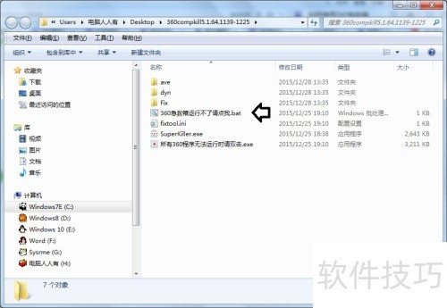 4、 如果360急救箱无法运行,可尝试使用请点我.bat批处理文件。若系统中exe文件无法执行,双击该批处理工具即可重新启用360急救箱,解决相关问题。