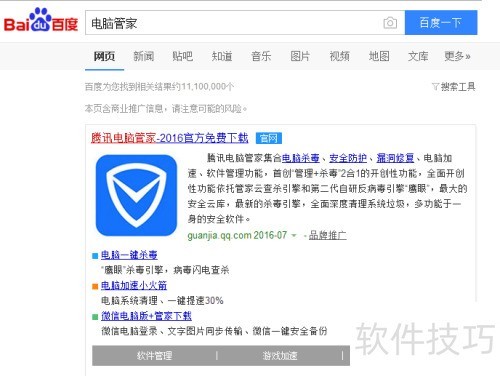 1、 未安装QQ电脑管家的用户,可先通过百度搜索,在官网进行下载。