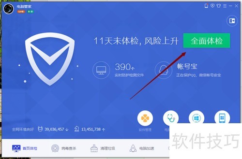 3、 虽然全面体检简单直接,但并不太推荐,因为可能会提示安装软件,或等待时间较长等问题。