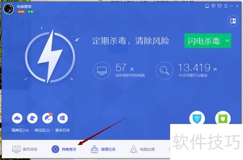 4、 病毒查杀功能,适合觉得电脑中毒时使用。普通用户只要不乱下载文件、不乱点网页,通常无需杀毒。