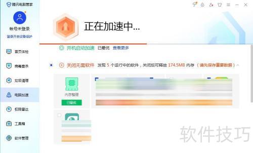 4、 电脑管家正在优化系统性能,修复异常设置。
