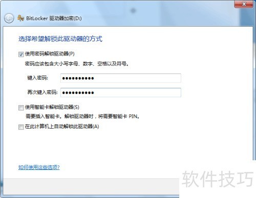 4、 之后可选择用密码作为驱动器的解锁方式。