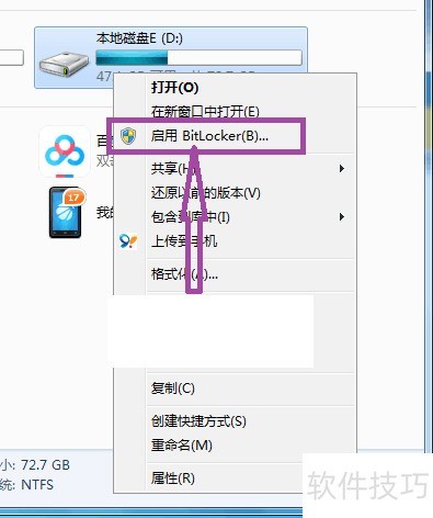 1、 右击要加密的硬盘,出现下拉菜单,选择启动BitLocker选项即可。